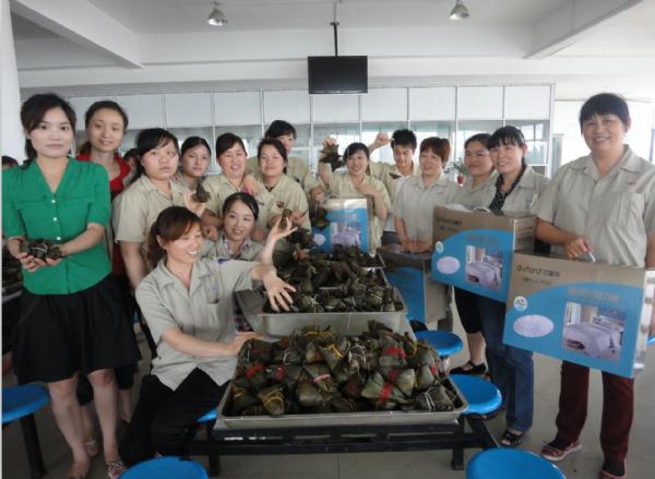 为庆祝一年一度的传统节日-端午节的到来,丰富员工业余生活,公司于2013年6月8日举办了“品端午、包粽子”比赛活动。此次活动参赛选手共有24人,分别来自公司各部门,比赛分为6个小组,各小组选手以抽签方式决定。除参赛选手外,还有很多对包粽子感兴趣的同事也参与到此次活动当中,到食堂观看、学习,现场气氛热闹非凡。此次比赛以“数量、速度、质量、美观”作为评判标准,20分钟内,以小组包扎的粽子数量最多为获胜,但包扎的粽子须不露馅、包扎严密、形状美观。经过一番激烈角逐,最后第三组以“114个”的好成绩获得了本次比赛的第一名。