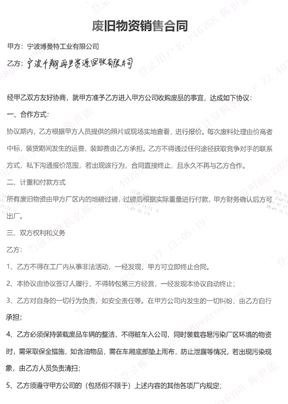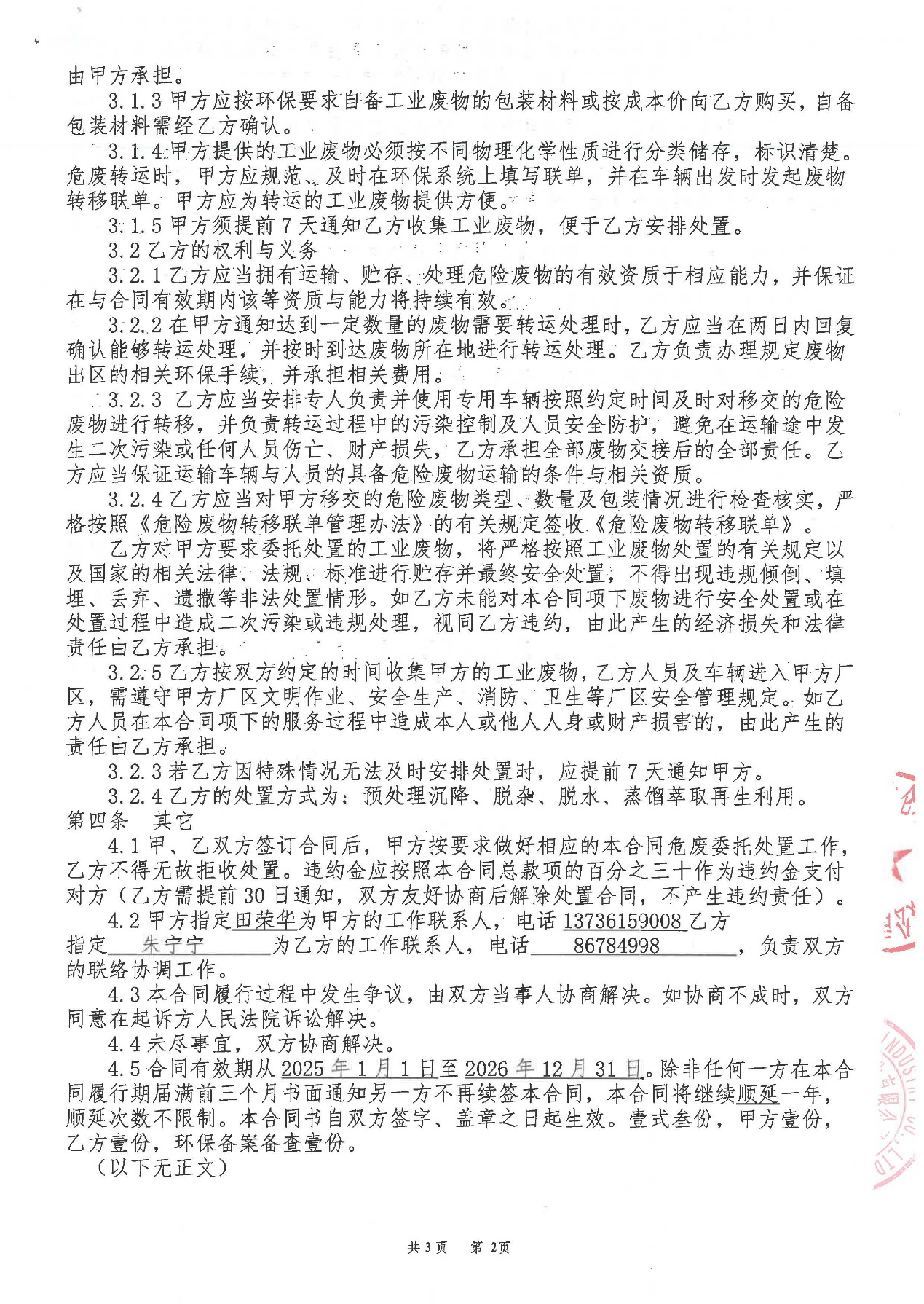 完成情况:与有资质方签订销售合同,并在合同中约定污染防治要求。