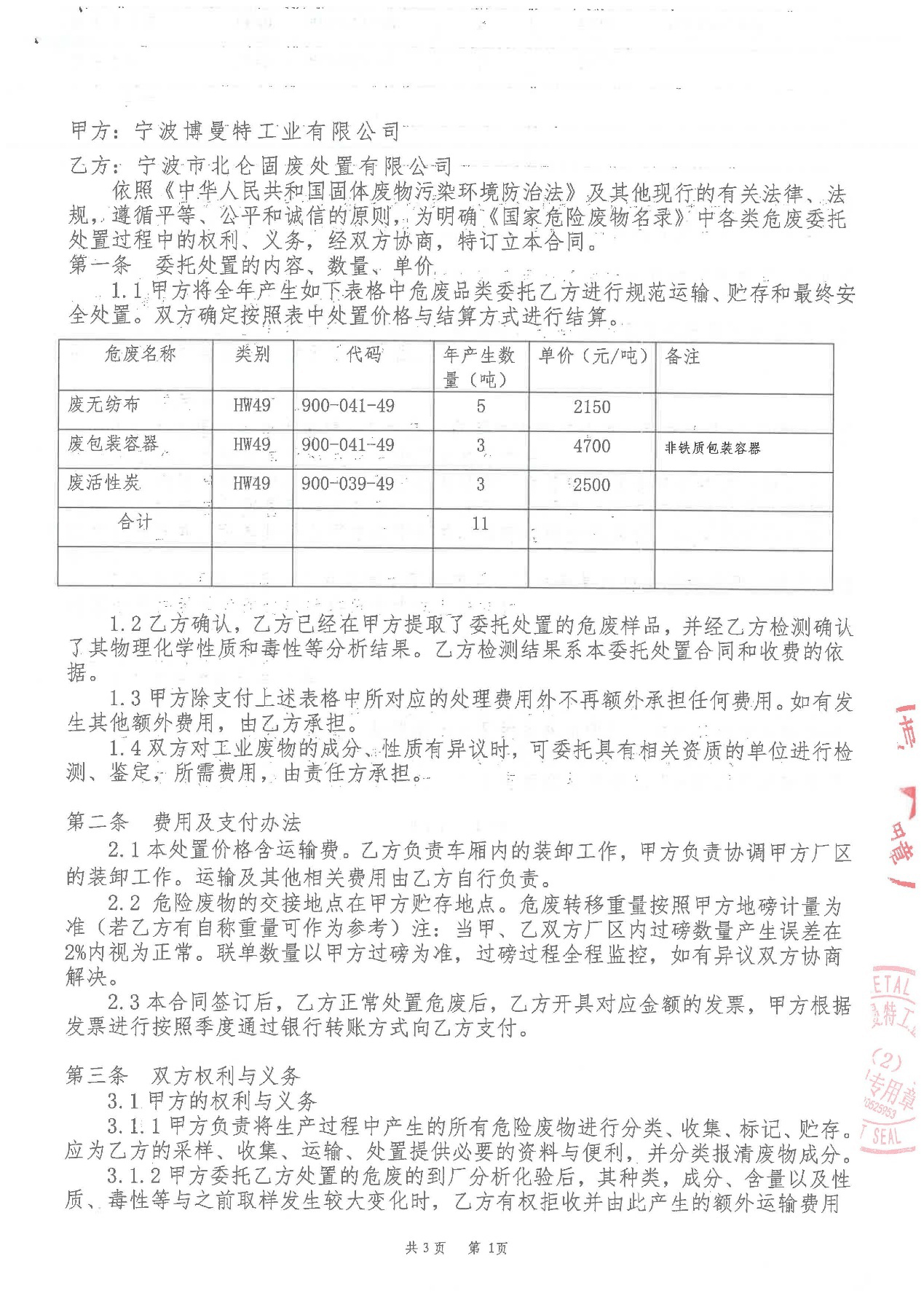 一般工业固体废物依法委托利用处置业务,依法签订书面合同并对受托方的主体资格和技术能力进行核实;在合同中约定污染防治要求。